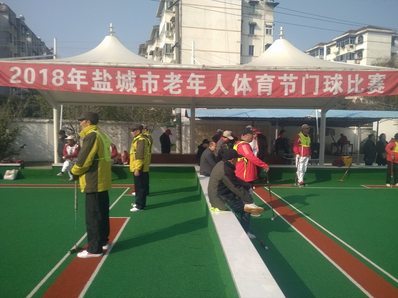 日前,盐城市老年人体育节门球比赛在东台举行,来自全市16支队伍200多名裁判员、教练员、运动员参加比赛,吸引了当地众多门球爱好者前来观战。