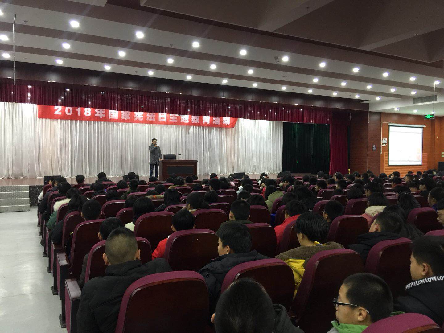 系列活动之四:宪法知识讲座和法制报告会。12月13日晚,全校师生在学校多功能厅参加了以“学法律、讲权利、讲义务、讲责任”为主题的宪法知识讲座。该校政治教师陈洋向学生们介绍了“宪法日”的由来、宪法的主要内容及宪法的重要作用,使大家对宪法有了新的更加全面的认识。