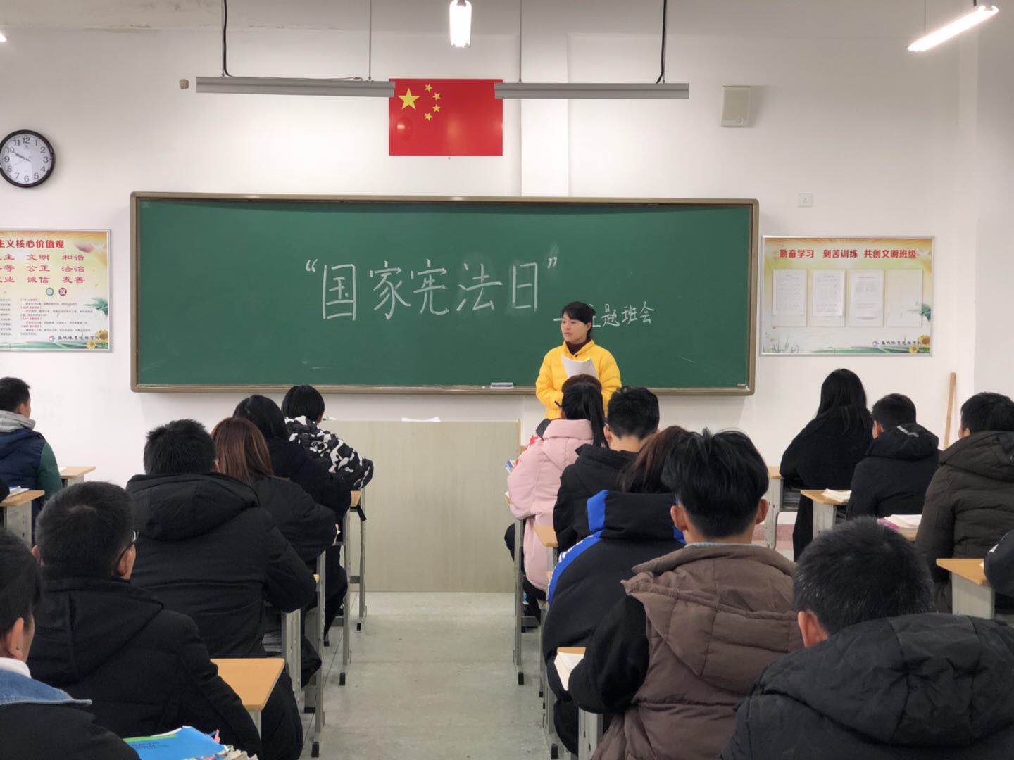 系列活动之一:宪法日主题班会课。12月4日晚,体校各班级开展宪法日主题班会课,班主任们紧紧围绕今年的国家宪法日宣传主题,讲解了宪法的相关知识,使学生们充分认识到宪法具有最高的法律地位、法律权威、法律效力。