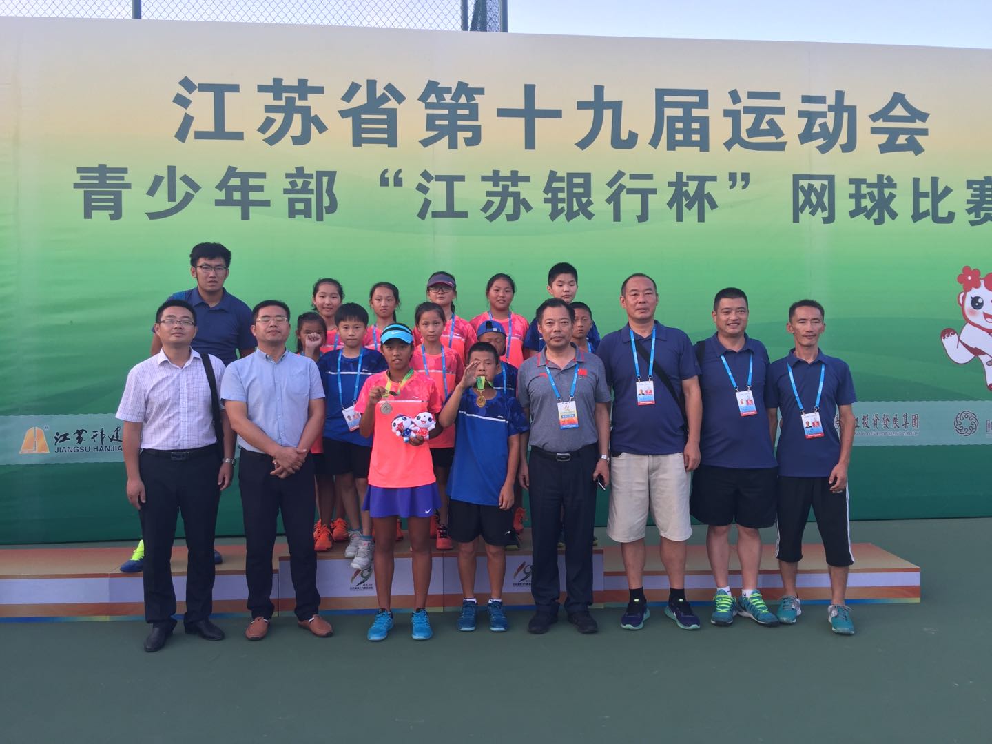 江苏省第十九届运动会青少年部网球单项比赛于9月5日在扬州市体育公园网球场进行决赛。经过5天的循环和淘汰赛,我市运动员陈烨不负众望,过关斩将,发挥出色,荣获男子11岁组单打冠军,运动员胡亚卉获得女子12岁组单打亚军,此成绩打破了我市该项目在省运会上无金牌的历史,为我市代表团再添1金、1银,为家乡人民争得了荣誉。(韦广银 平俊)