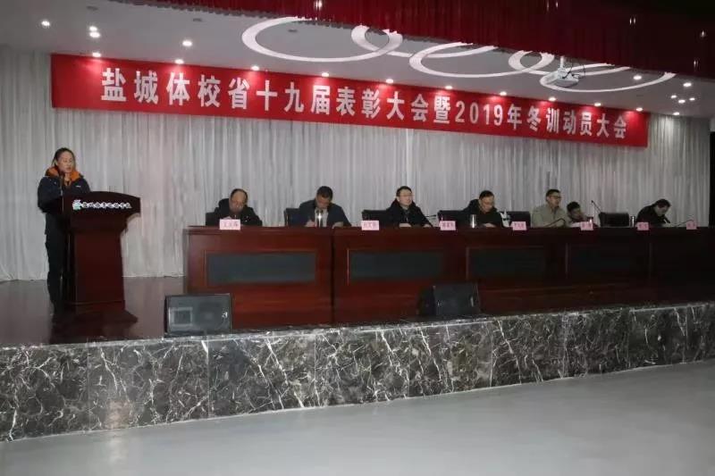 12月18日,盐城体校召开省第十九届运动会表彰奖励暨2019年冬训动员大会。盐城体校党总支书记、校长李文进参加会议并讲话,副校长陈亚军主持会议。