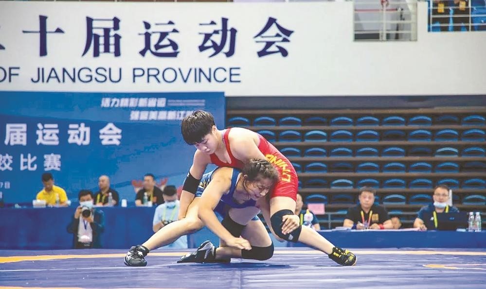 江苏省第20届运动会摔跤项目7月4日开赛,盐城市运动员韩霜在女子16-17岁组自由式摔跤57公斤级比赛中一举夺魁,为盐城摔跤队赢得开门红。比赛中,盐城运动员敢打敢拼,在女子16-17岁组自由式摔跤项目其他级别的较量中,李银迎获46公斤级铜牌、郭美雅获49公斤级第五名、祖思丹获73公斤级第七名。在男子16-17岁组古典式摔跤55公斤级的比拼中,陈浩获得第八名。
