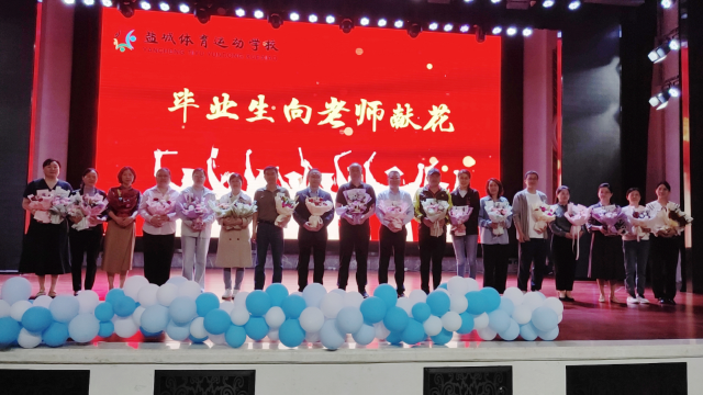 三年来,毕业生和老师、教练风雨同舟、荣辱与共,他们所取得的每一次进步,每一滴成绩,每一份荣耀都凝聚着老师和教练的努力和汗水。活动最后,毕业生代表为老师和教练献上鲜花,感谢他们三年来的默默陪伴和谆谆教诲。