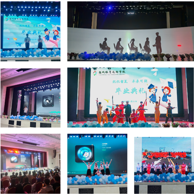 接着,师生带来了精彩的节目,以此庆祝全体毕业生成功闯过三年的酸甜苦辣,表达对未来的殷切期望。一首《光阴的故事》开启了演出的序曲;充满活力的现代舞《大梦想家》,使典礼现场迅速活跃起来;武术表演《精忠报国》尽展体校学子朝气蓬勃的青春风采;充满创意的影子剧《我们毕业啦》则让同学们回忆起三年来快乐、拼搏的日子,并憧憬着未来再次重逢。在场师生合唱《再见》,深情的歌声里,满含不舍和期望。