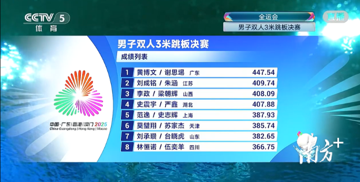11月6日晚间,十五运会跳水男子双人3米板项目迎来决赛,共有12支队伍参加最终角逐。广东队的谢思埸/黄博文组合发挥稳定,在六轮比赛过后以447.54分夺冠,江苏队的刘成铭/朱涵这对“老将组合”凭借硬实力+大心脏顶住了压力,以409.74分获得亚军,山西队的李政/梁朝辉以408.09分位列第三。其中,刘成铭是由亭湖培养输送的跳水运动员。