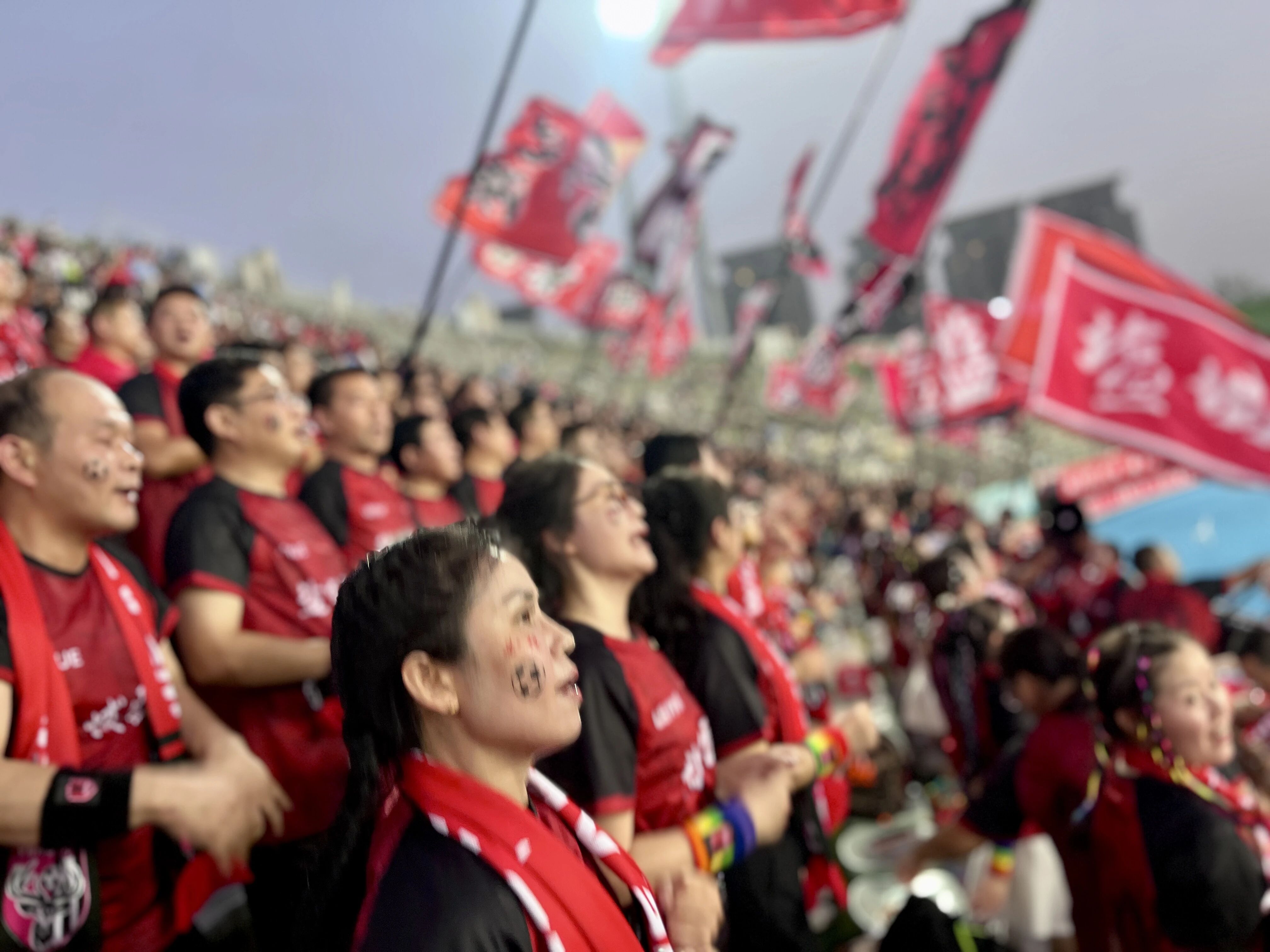 看台上盐城队的球迷们是球队最坚实的后盾这不仅是一场足球盛宴也是属于球迷们的狂欢时刻大家炽热的激情将赛场化作一片沸腾的海洋