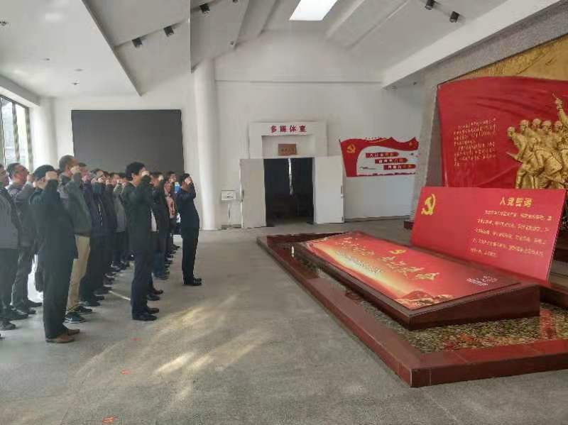10月28日,市直体育系统党员干部赴射阳参观中共华中工委纪念馆,开展“不忘初心、牢记使命”主题教育。在纪念馆鲜艳的党旗前,市体育局党委书记方仕德同志带领全体党员重温了入党誓词。