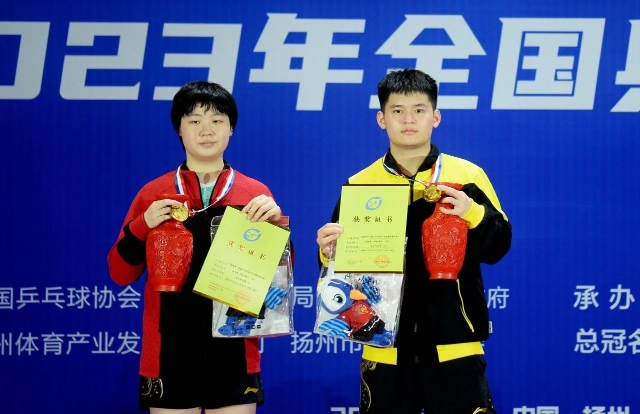 2023年全国乒乓球锦标赛混双决赛在扬州市体育公园落下了战幕,蒯曼搭档队友林诗栋,以3:0击败向鹏/刘炜珊夺得混双冠军,三局比分为11:9、11:3、11:8。