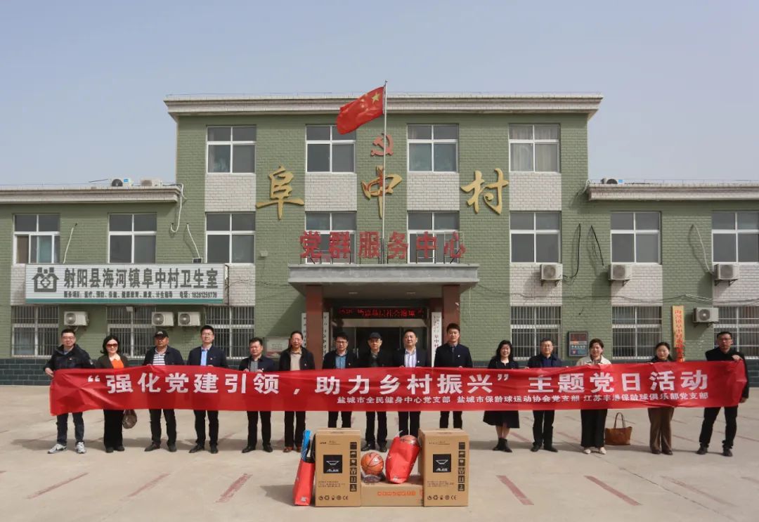 4月12日上午,市全民健身中心党支部联合市保龄球运动协会党支部和江苏丰港保龄球俱乐部党支部党员代表赴射阳县海河镇阜中村开展“强化党建引领 助力乡村振兴”主题党日活动。