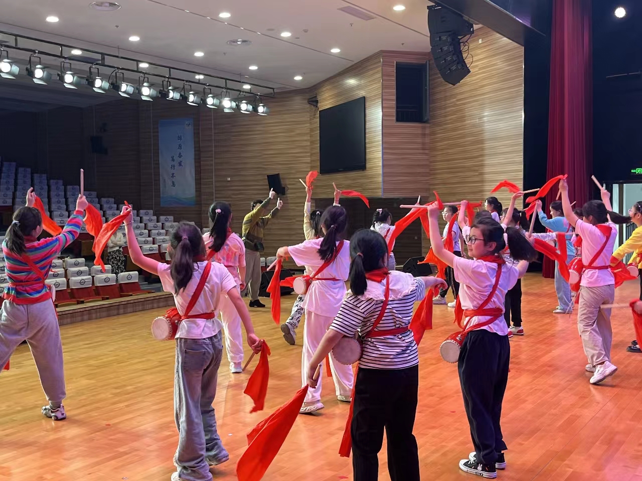 几天的活动中,志愿者从最基本的鼓点教起,耐心地为同学们示范腰鼓敲打的基本动作要领,同学们个个劲头十足,激情饱满,展现出积极向上的精神风貌。志愿者们采用先易后难的教学方式,对每一个动作进行细化分解,耐心指导击鼓的动作要领。学生们精神抖擞,扭腰跨步,彩绸翩舞,起势、马步、对望……时而奋力跳跃,时而穿插变换,现场气氛激昂热烈。