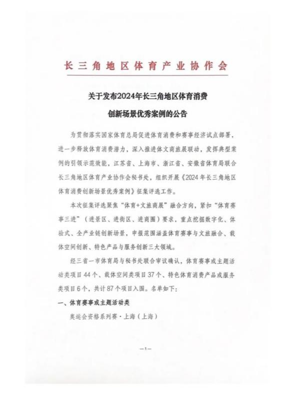 近日长三角地区体育产业协作会秘书处发布评选结果三省一市共87项入围其中2024盐城第四届体育消费惠民展成功入选!