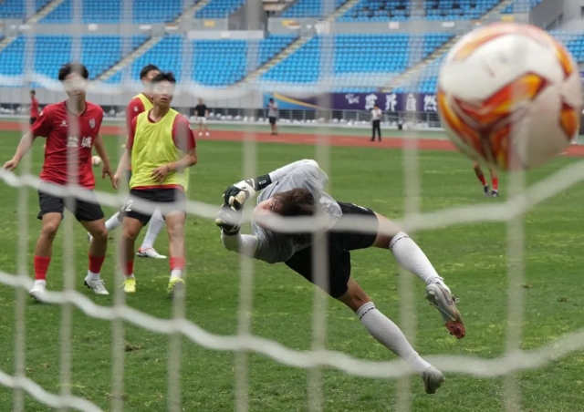 除了学生,盐城队中也有学校教师、企业职员、餐馆服务员。23岁小伙单伟,白天踢“苏超”,晚上“海底捞”,是名副其实的“草根球员”。“食客认出我后,合照签名什么都有,没啥影响。”单伟说,“从小踢足球,不会随便放弃,肯定要坚持的。”