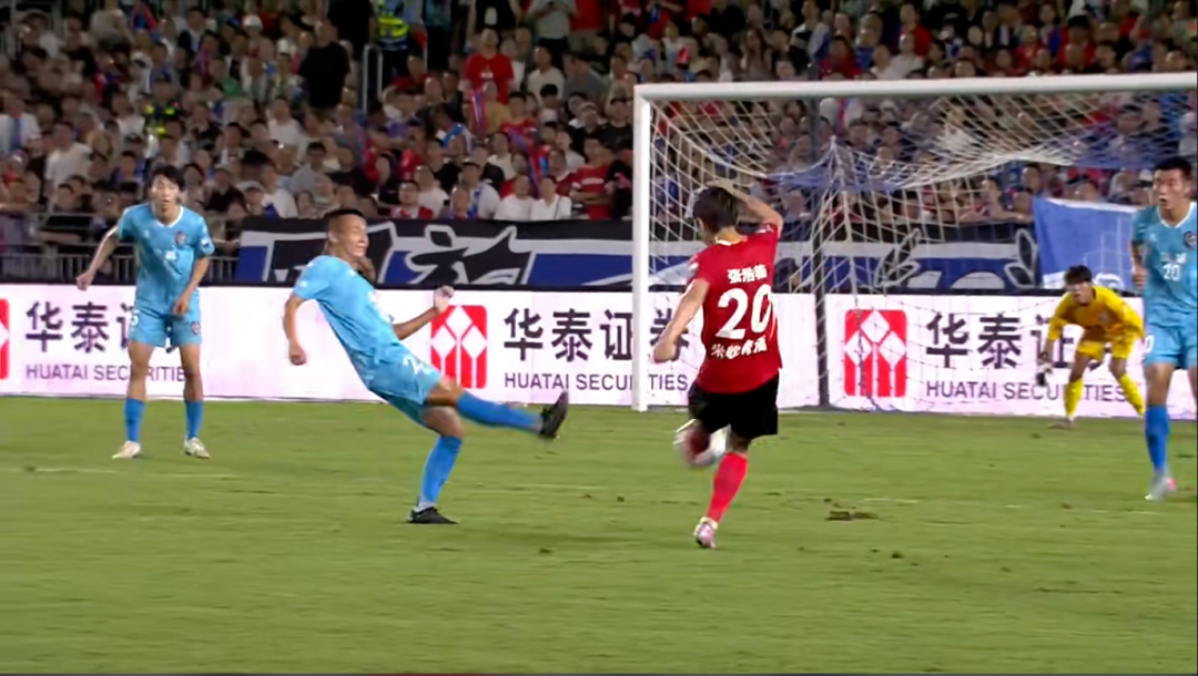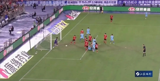 第83分钟时,盐城队右前场获得定位球机会,皮球传至门前,刚刚替换上场的34号队员艾孜买提·木合塔而江高高跃起,头槌破门,扳回一分。