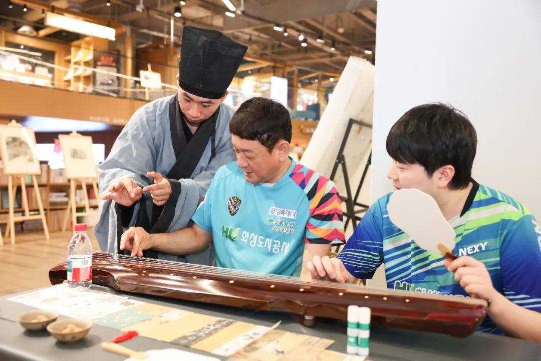 活动期间,韩国青少年选手们来到中韩文化客厅,参与“焚香操琴,礼乐和合——走近中国六艺文化”为主题的国学文化交流活动,中国海盐博物馆、盐城市博物馆特聘传统文化讲师围绕 “礼、乐、射、御、书、数”六艺展开讲解,从古人修身养性的智慧到传统艺术的精神内核,让在场的韩国选手对中华传统文化有了初步认知。