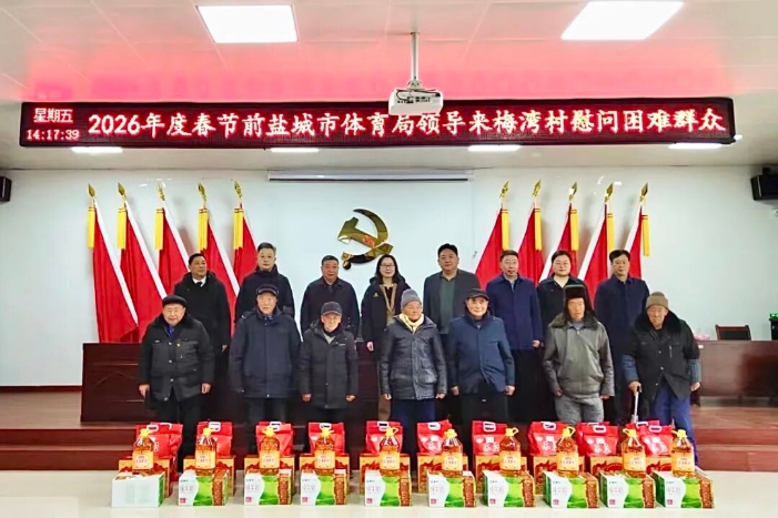 为切实履行市委“干部联村、一村一策”帮扶责任,扎实推进富民强村工作,2月6日,市体育局党委书记、局长徐丹带队赴响水县大有镇梅湾村,开展春节前走访慰问活动,并就基层体育设施建设使用情况进行调研。