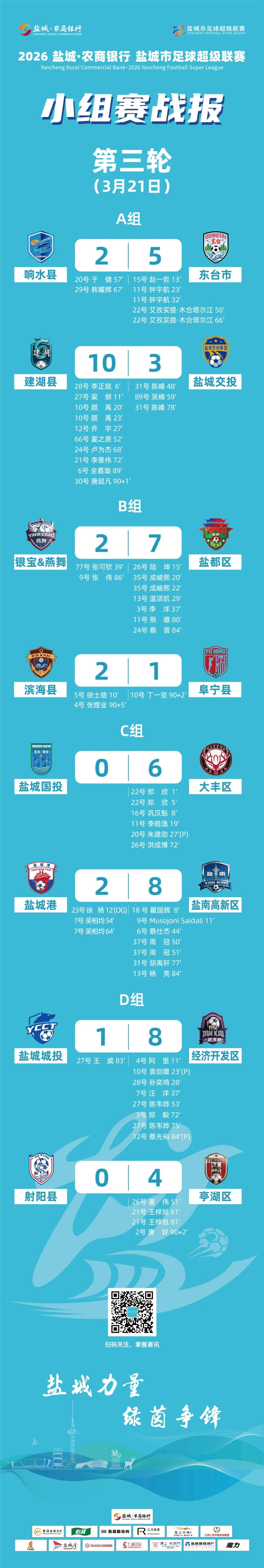 报!2026年盐城市足球超级联赛最新战报来了!八强产生!